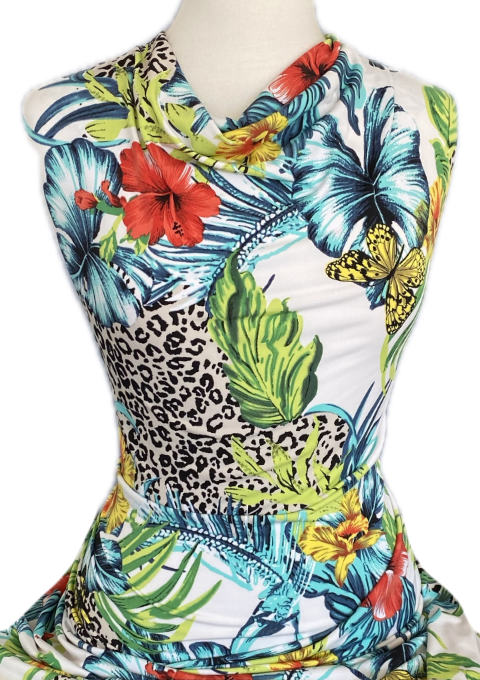 Knitwit Printed Jersey Knit Adventure Multicolour is suitable for tops, soft skirts and dresses – easy-care i.e. doesn’t need ironing and great for travelling.